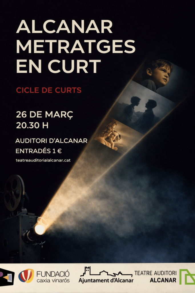 El pròxim 26 de març a les 20.30 h, l’Auditori d’Alcanar acull una nova sessió del cicle Alcanar Metratges en Curt, una proposta que consolida el curtmetratge com a espai de qualitat, risc i mirada contemporània.